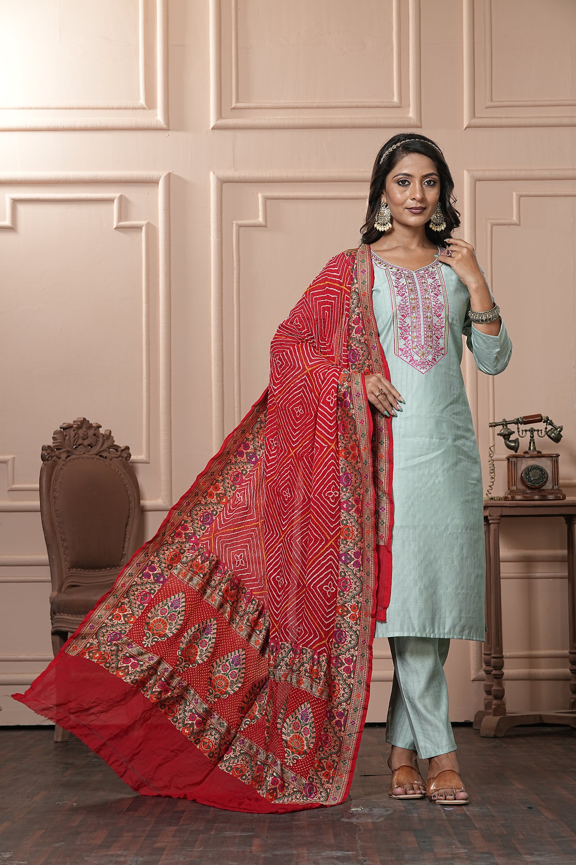 Premium Exquisite Pure Silk Georgette Bandhani Dupatta.
