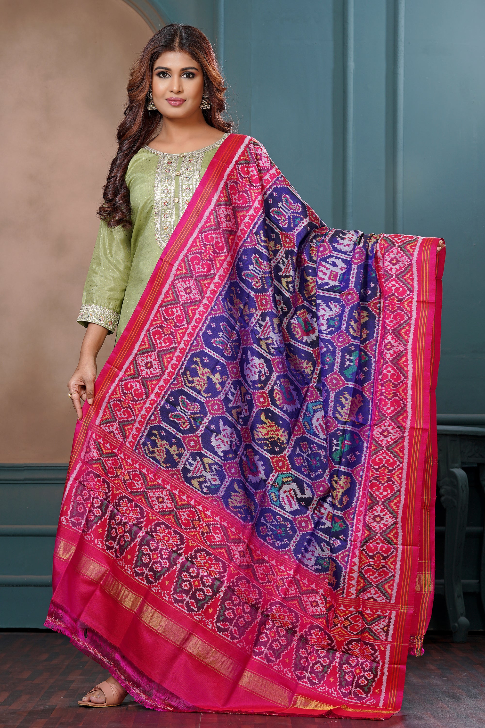 Premium Exquisite Pure Silk Single Ikat Dupatta.