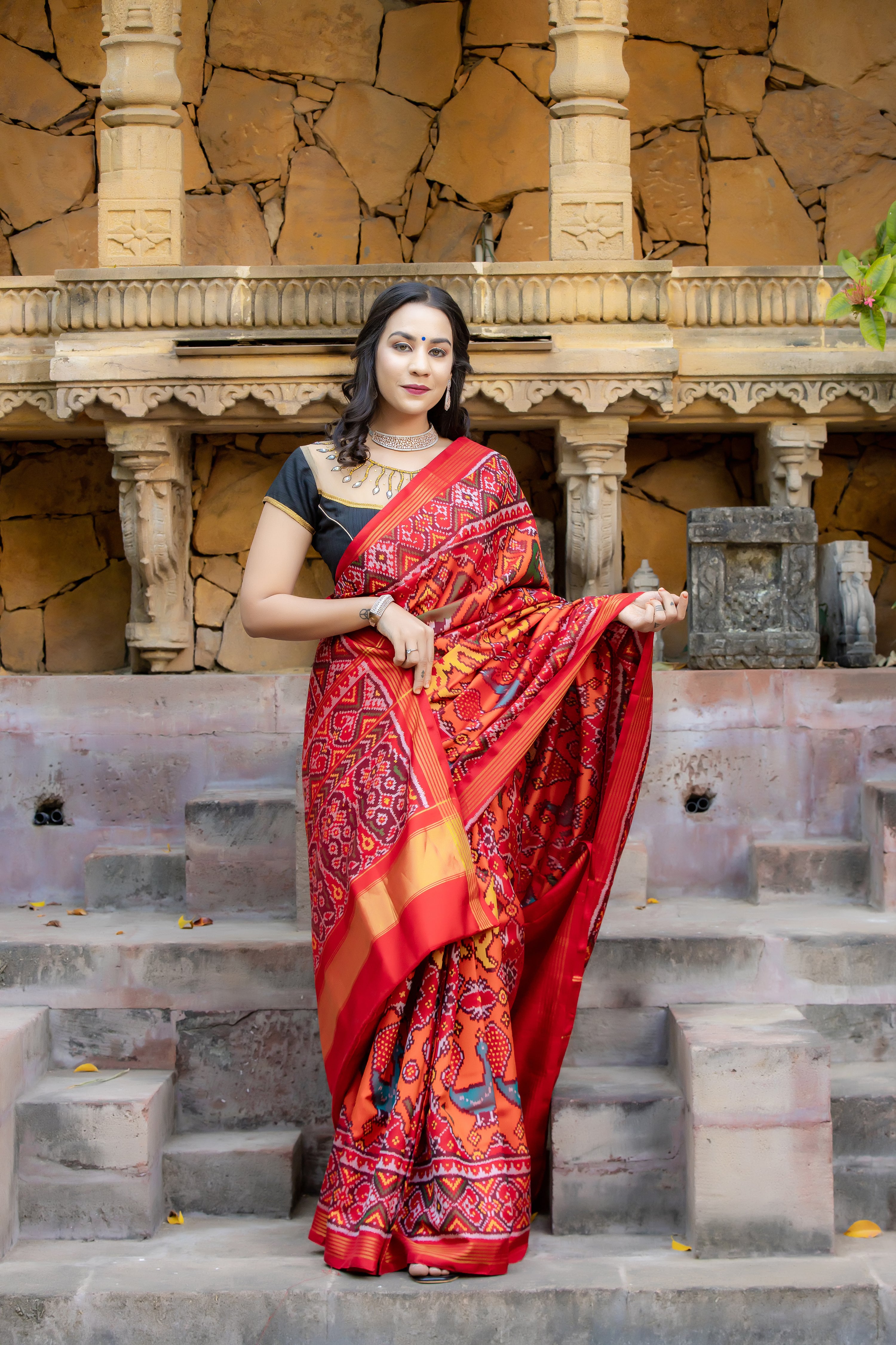 Premium Exquisite Pure Silk Single Ikat Patola Saree.