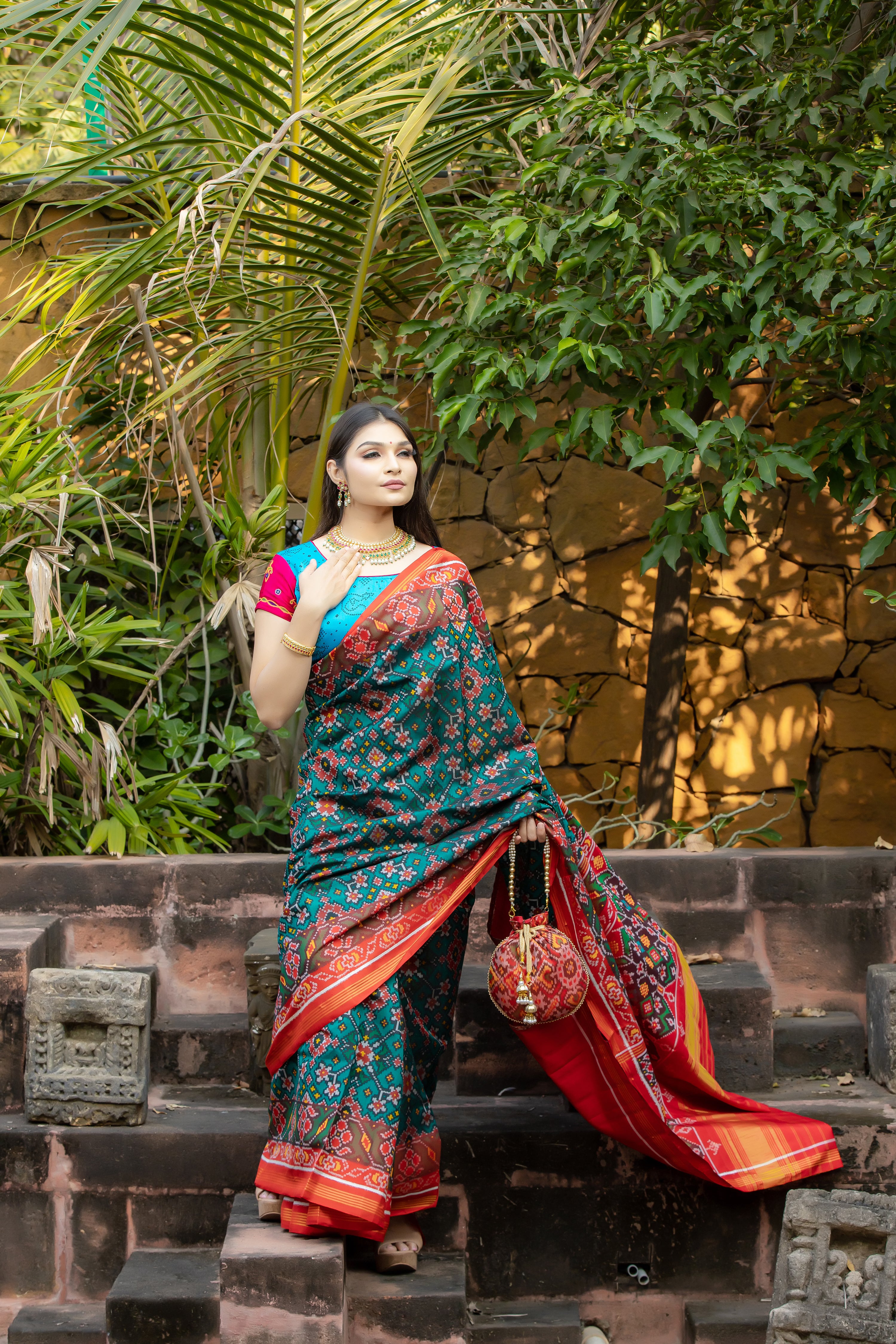Premium Exquisite Pure Silk Single Ikat Patola Saree.