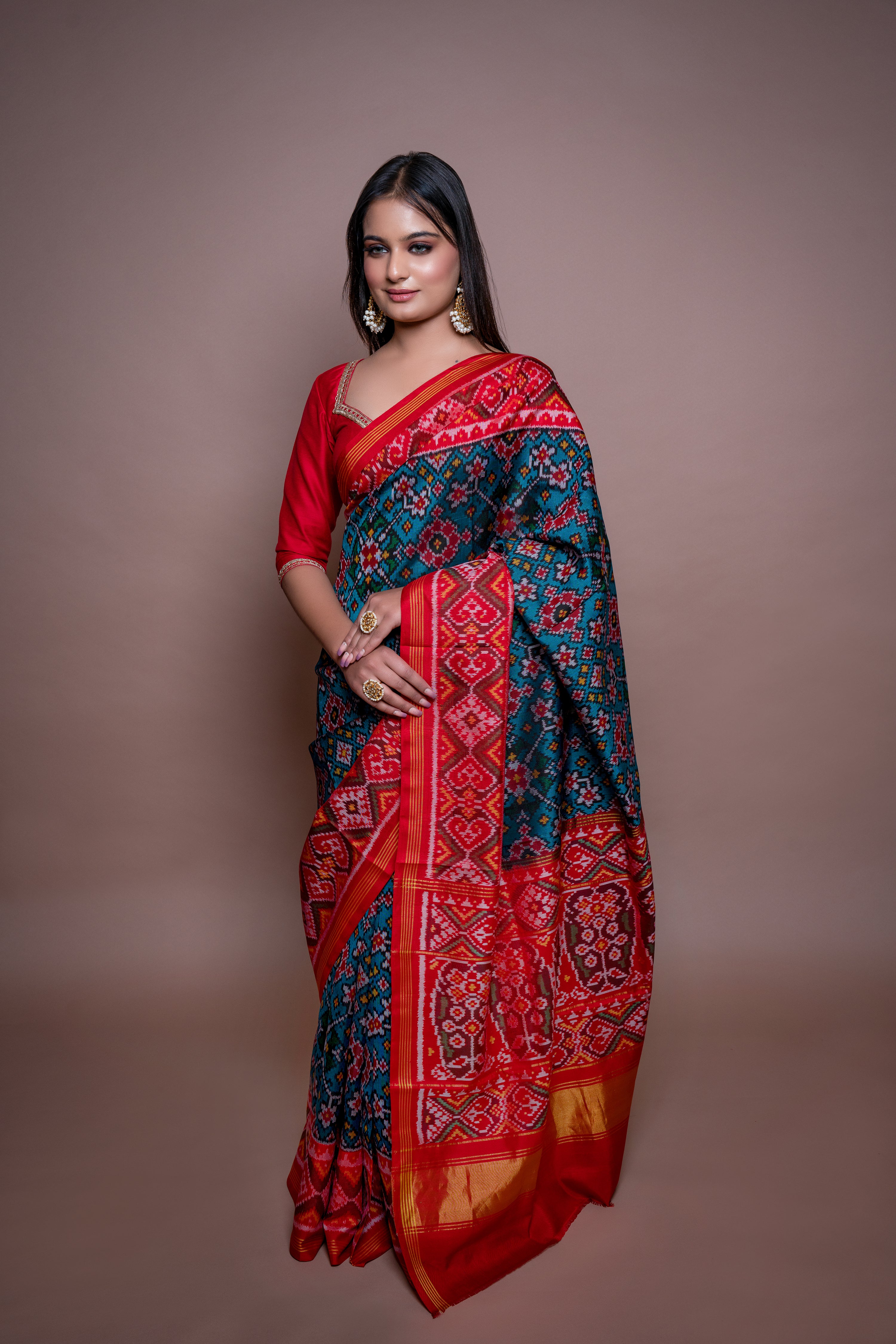 Premium Exquisite Pure Silk Single Ikat Patola Saree.